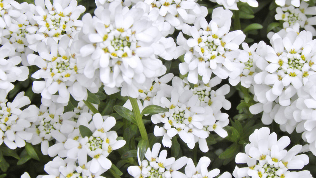 イベリスは、春に砂糖菓子のように集まって咲く白い小花が特徴で、太陽に向かって曲がる性質や甘い香りが、花言葉の由来となっています。