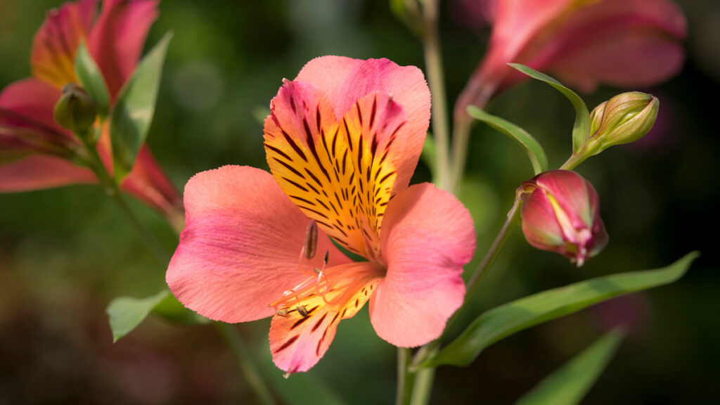 エキゾチックな花姿と豊富な色、花持ちの良さが特徴です。小さなユリのような可憐な花びらに独特の模様があり、1本に複数咲くため、花束やアレンジメントにボリュームと華やかさを与え、長く楽しめることから贈り物に最適です。