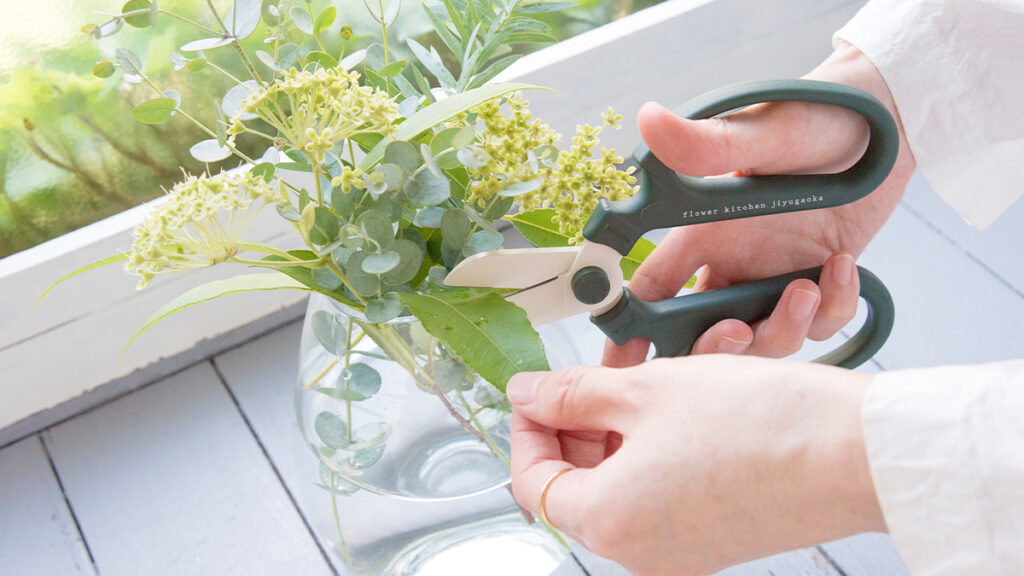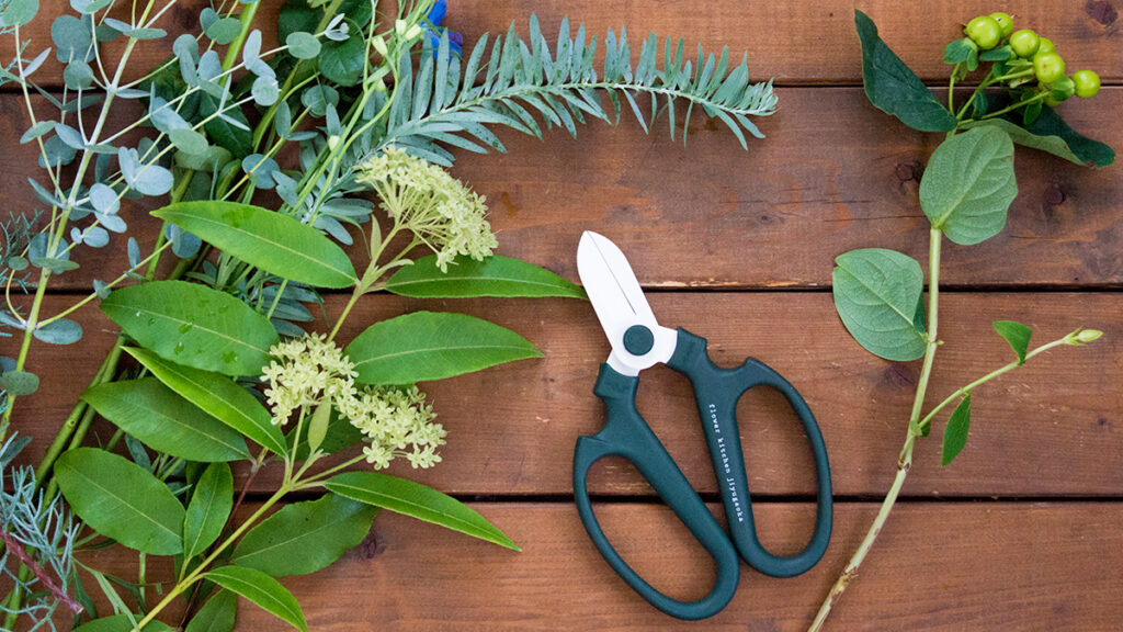 バケツ、水差し、ラッピングペーパー。いろいろありますが、やはりいちばん身近で、いちばん出番が多いのは「はさみ」かもしれません。