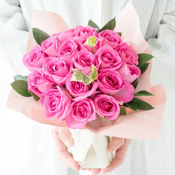 18本のバラを束ねた、存在感のあるスタンドブーケ。