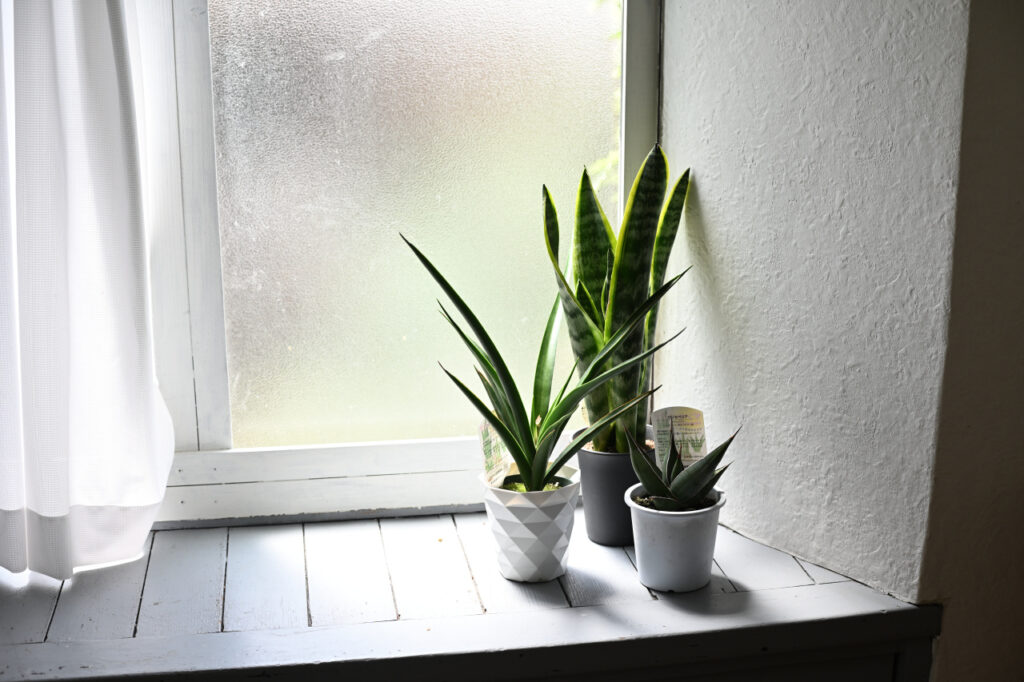 サンセベリアが最もよく育つのは、明るい間接光が1日数時間当たる環境です。レースカーテン越しの窓際や、窓から少し離れた明るいリビングがこれに当たります。