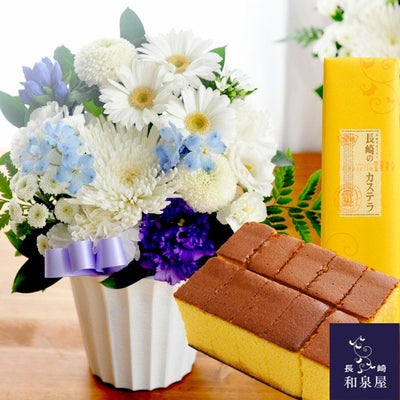 洋花を使った旬のおまかせ お供え花 Sサイズ+ 長崎カステラ蜂蜜 0.5号 10切入 長崎和泉屋  生花 FKAASWのレビュー