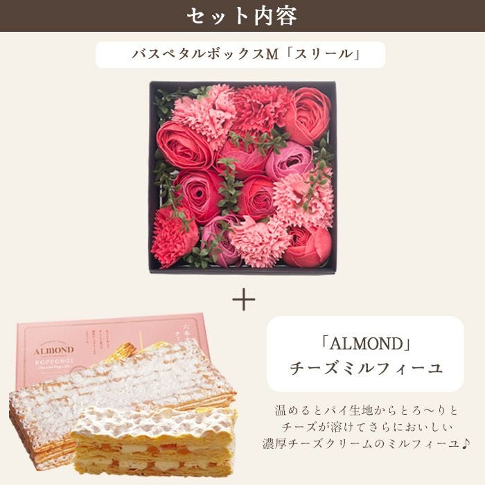 花とスイーツのセット ムーンダストを使ったお供えアレンジメントLサイズ+「六本木アマンド」チーズミルフィーユセット 生花 FKAASW