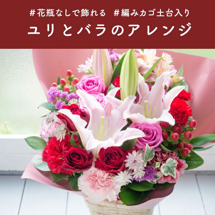 ユリとバラのアレンジ 誕生日 アレンジメント プレゼント FKAA