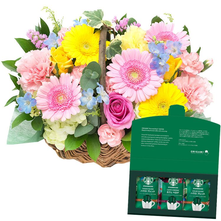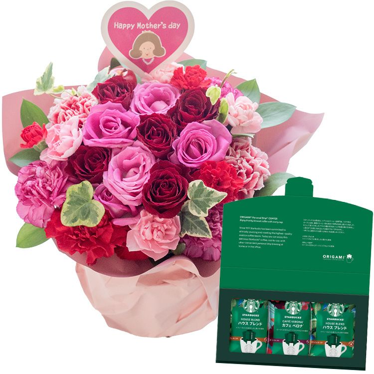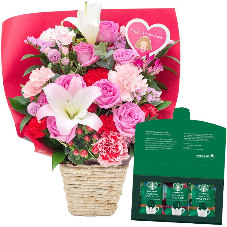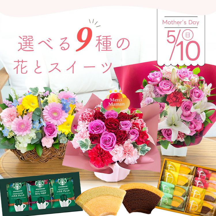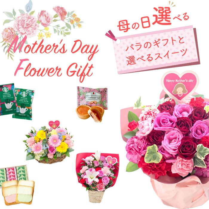 母の日 生花 【花とスイーツ】選べる12種 スタイルが選べるフラワーアレンジ と スイーツ・コーヒー ギフトセット 2025 FKHH