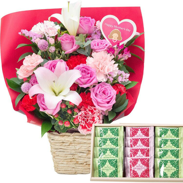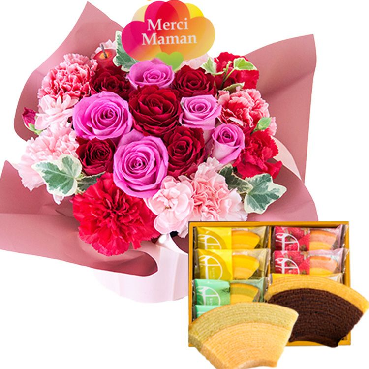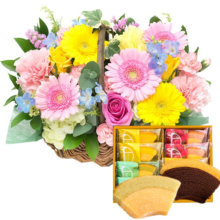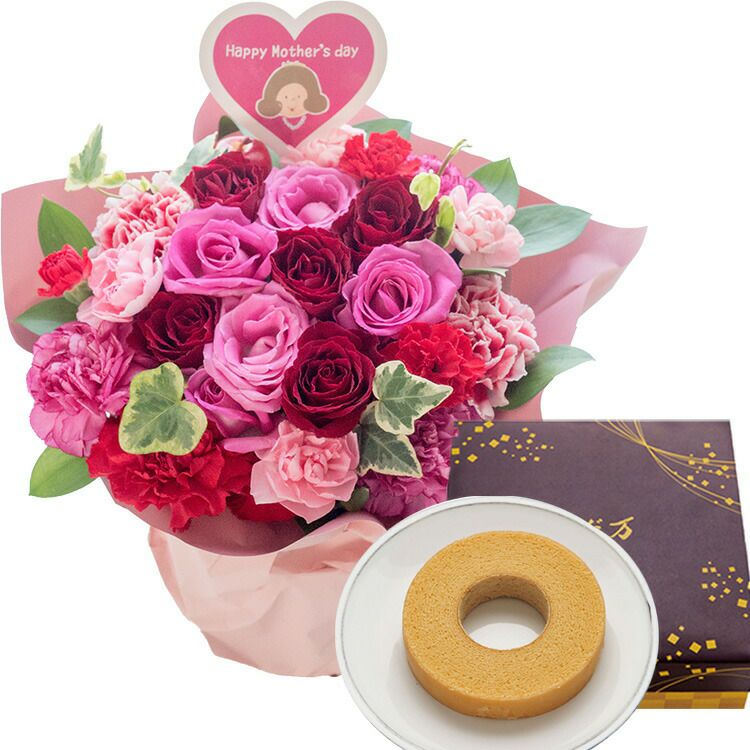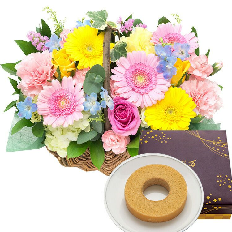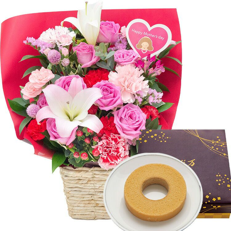 \完売御礼/ 母の日 生花 【花とスイーツ】スタイルが選べるフラワーアレンジ と 千疋屋フルーツクーヘンセット 2025 FKHH