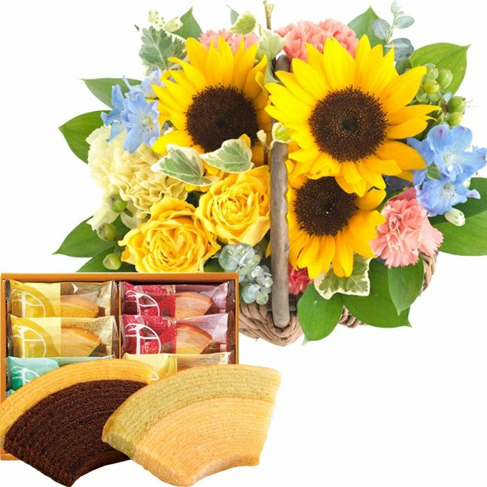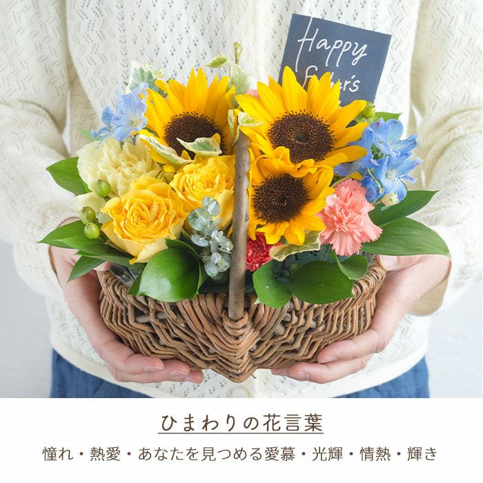 父の日限定ギフト バラひまわりバスケット 特製父の日タグ付き 選べるスイーツセット 2025 FKPP