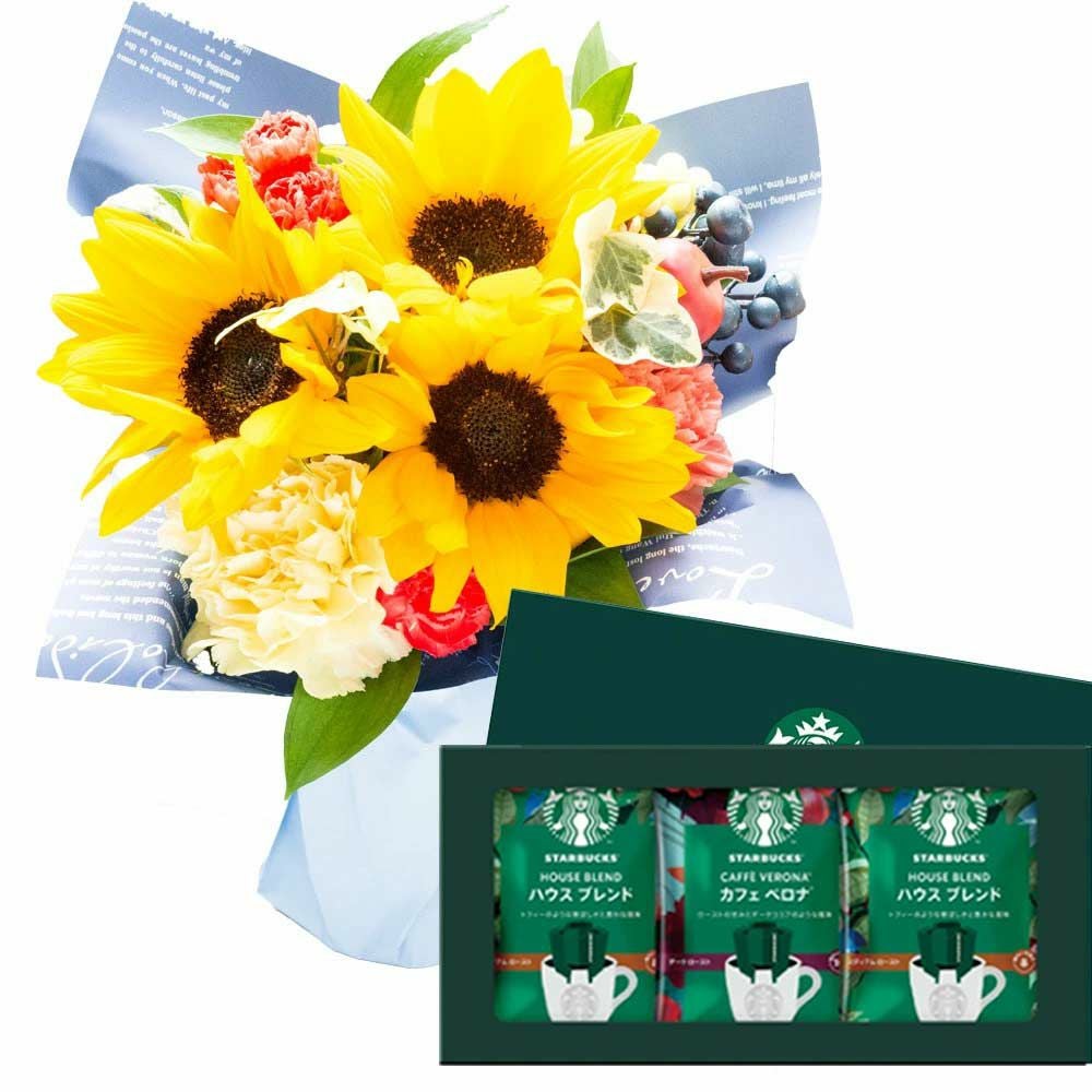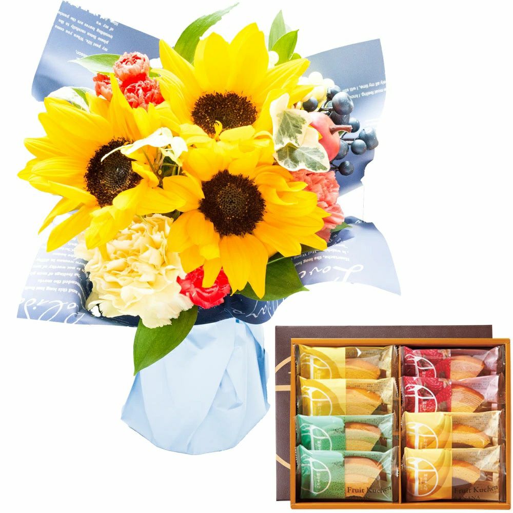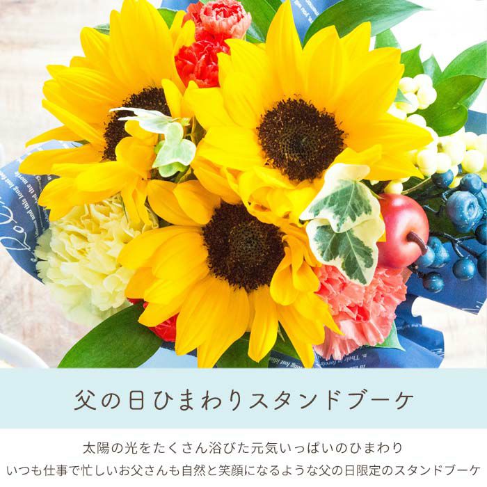 父の日限定ギフト ひまわりスタンディングブーケ そのまま飾れる花束 選べるスイーツセット 2025 FKPP