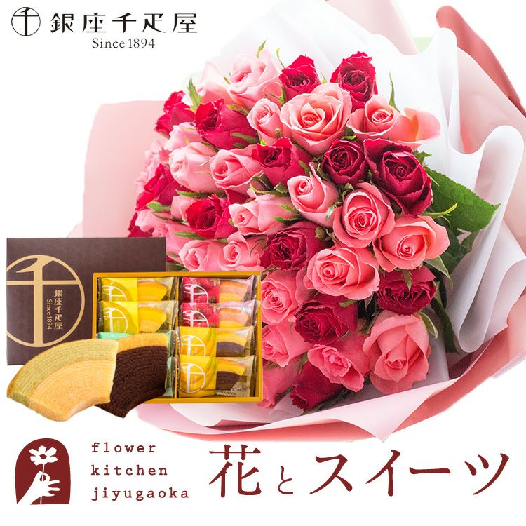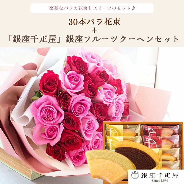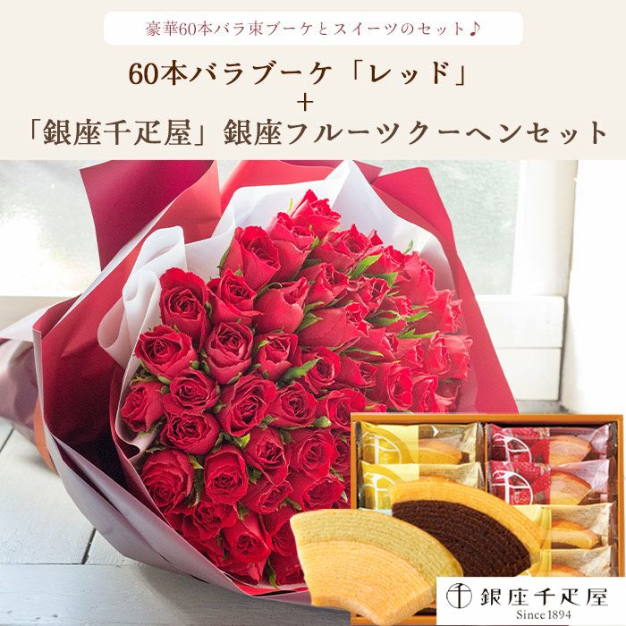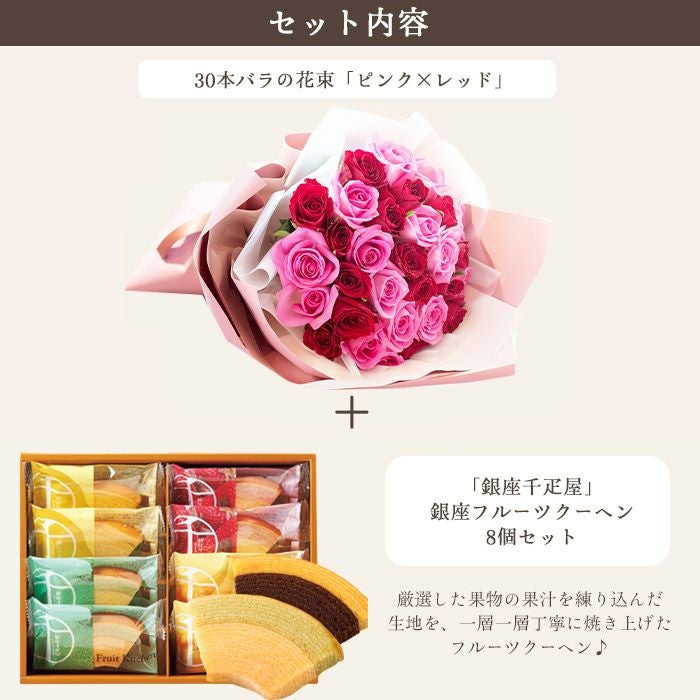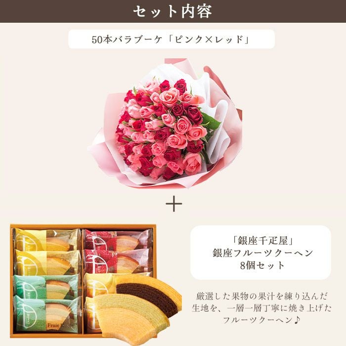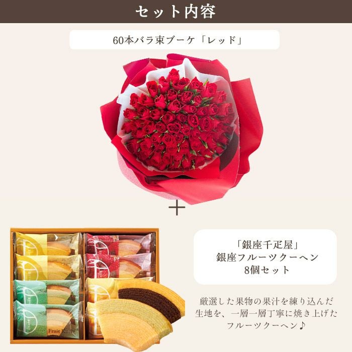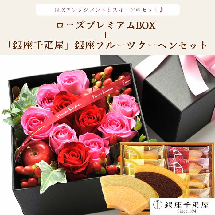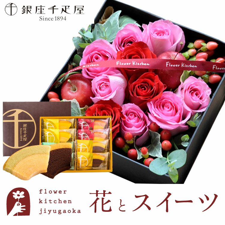 数量限定 ボリュームのある花ギフトと銀座千疋屋 フルーツクーヘン のセット 送料無料