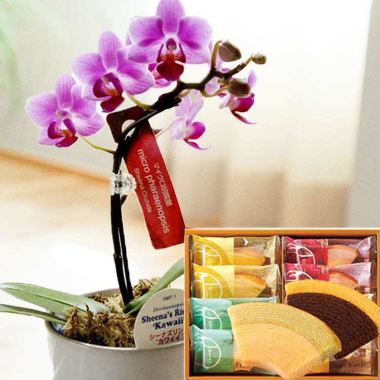 母の日 ギフト マイクロ胡蝶蘭 と 銀座千疋屋フルーツクーヘン スイーツセット 2025 FKHH