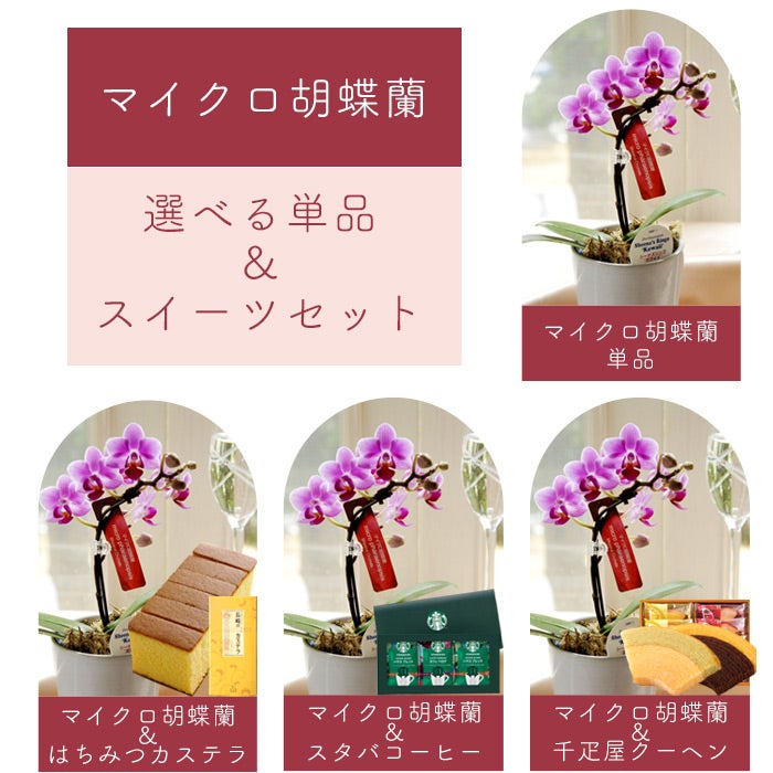 母の日 ギフト マイクロ胡蝶蘭 ピンク系 選べるスイーツ 花鉢 ギフトボックス入り 2026 FKHH