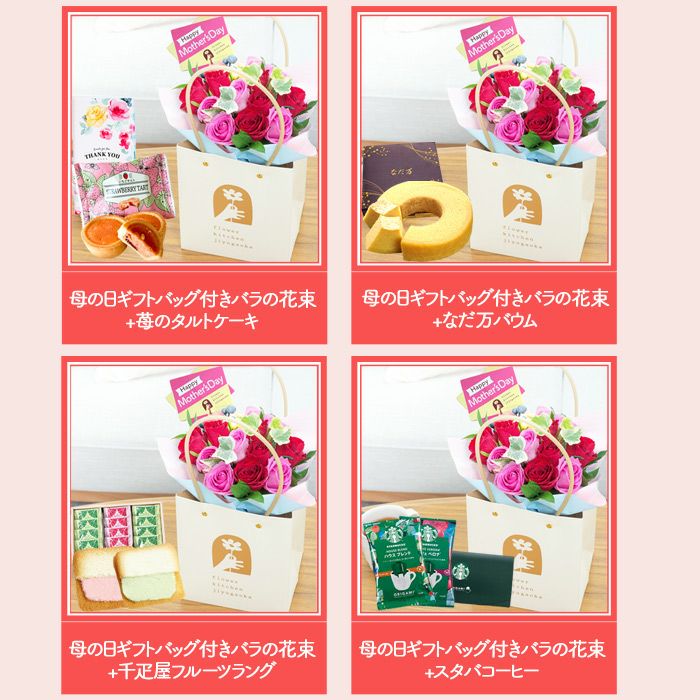 母の日 生花 【花とスイーツ】選べる12種 バラのギフトと選べるスイーツ・コーヒー セット 2025 FKHH