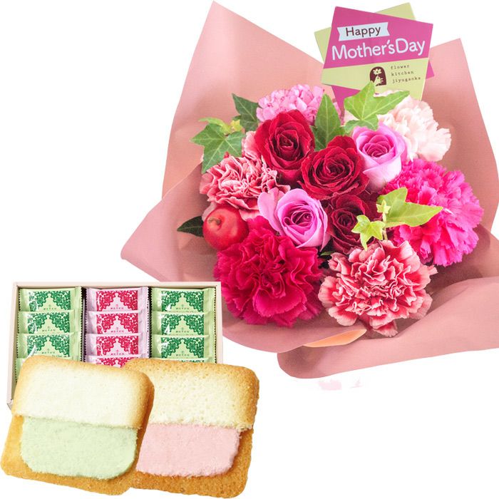 人気のバラのアレンジメントとスイーツのセット 送料無料