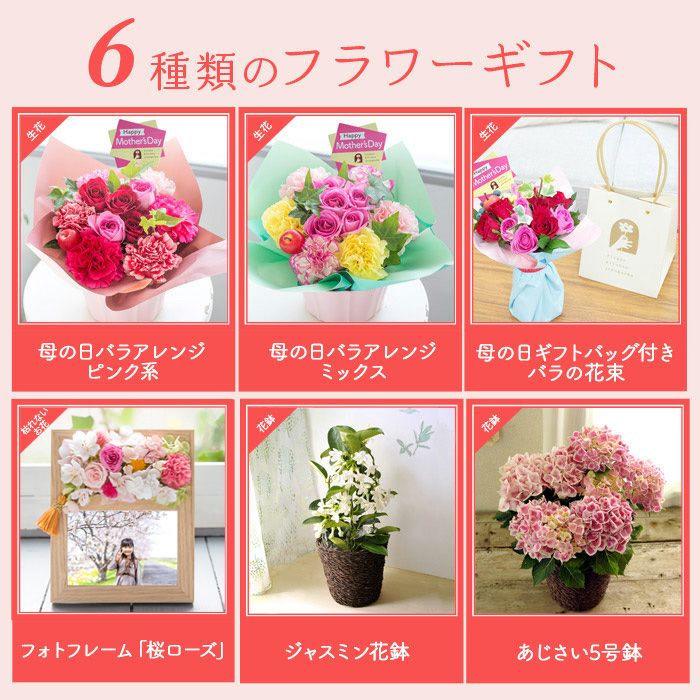 母の日 プレゼント 選べる花ギフト 6種 バラアレンジ アジサイ 花束 花鉢 2025 FKHH