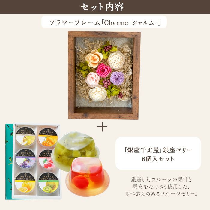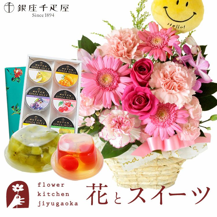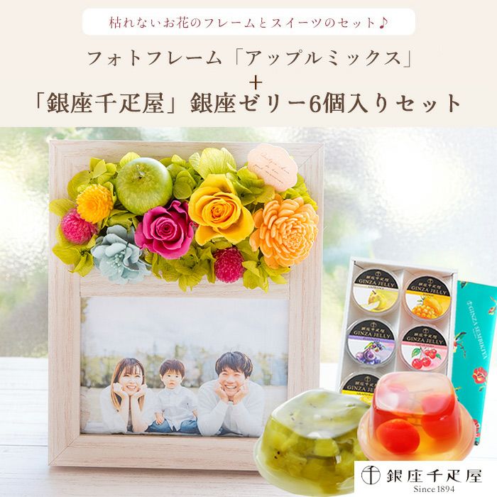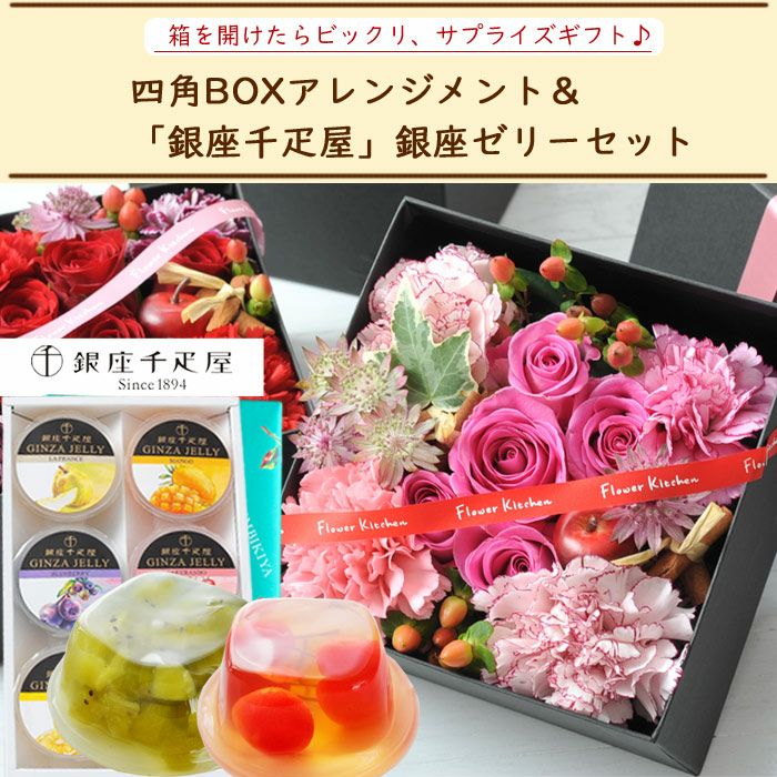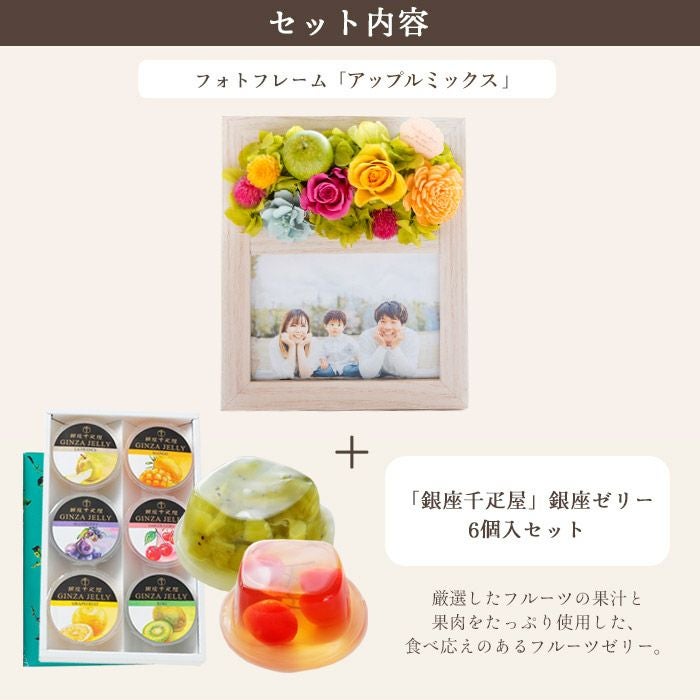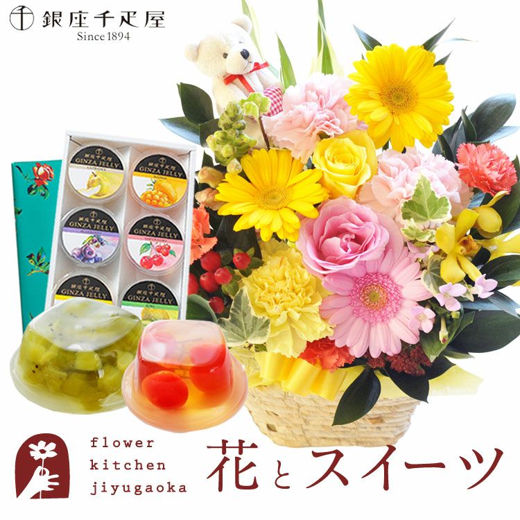 花とスイーツのセット ムーンダストを使ったお供えアレンジメントMサイズ+【銀座千疋屋】銀座フルーツゼリー6個入りセット 生花 FKAASW