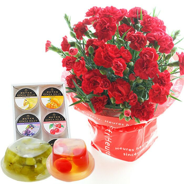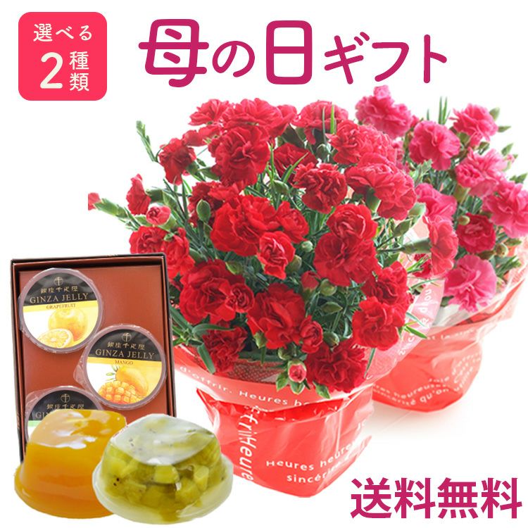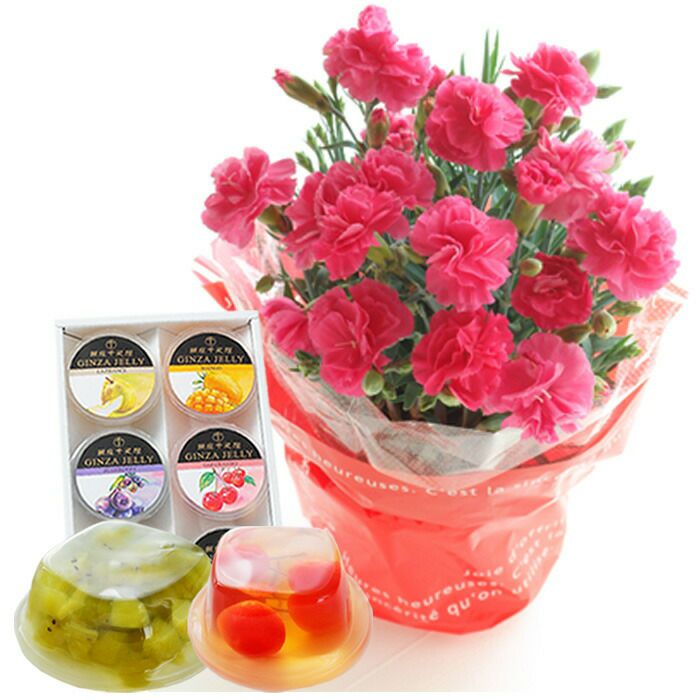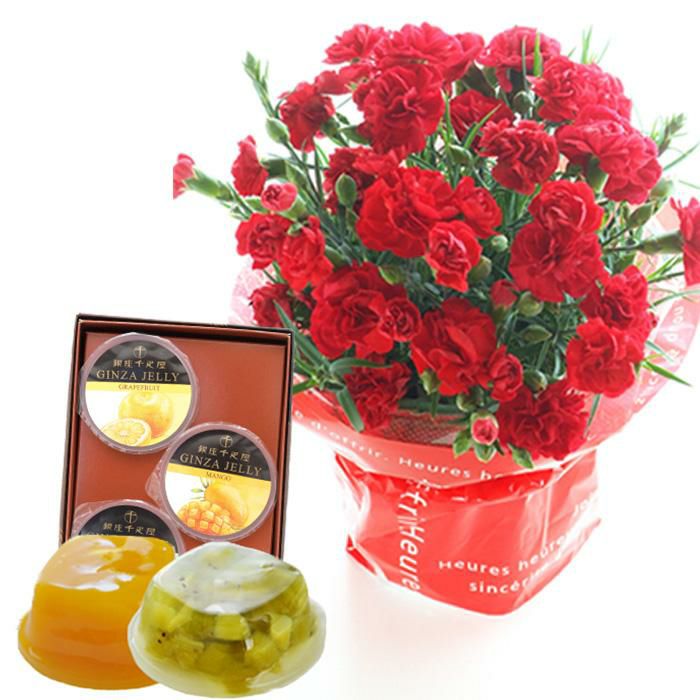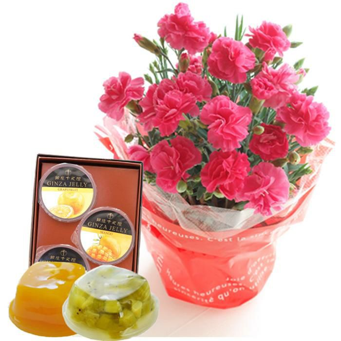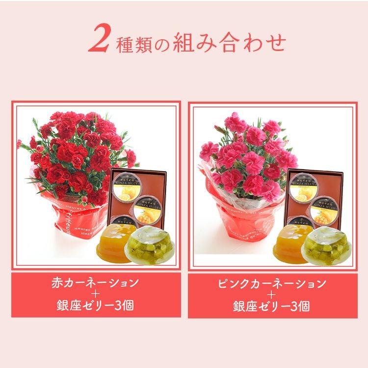 \完売御礼/ 母の日 プレゼント 【花とスイーツ】色で選べるカーネーション花鉢と銀座千疋屋 銀座ゼリー3個 スイーツセット 2025 FKHH