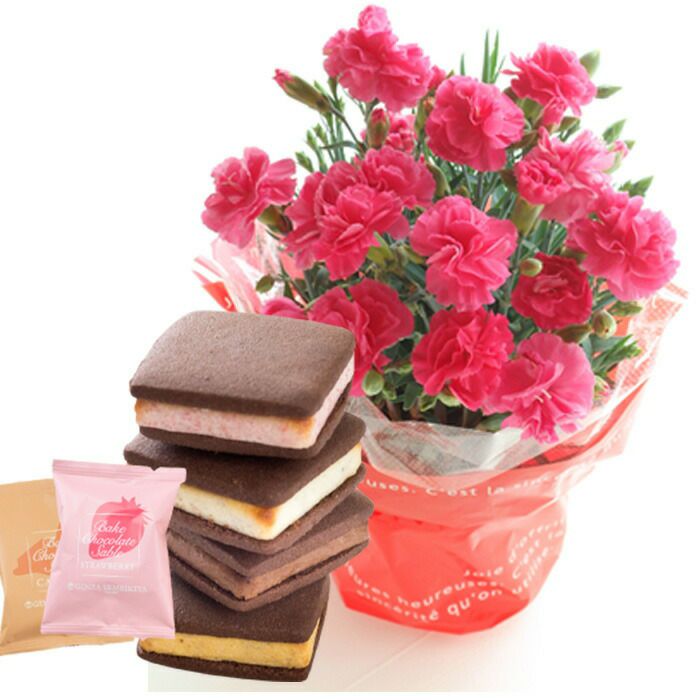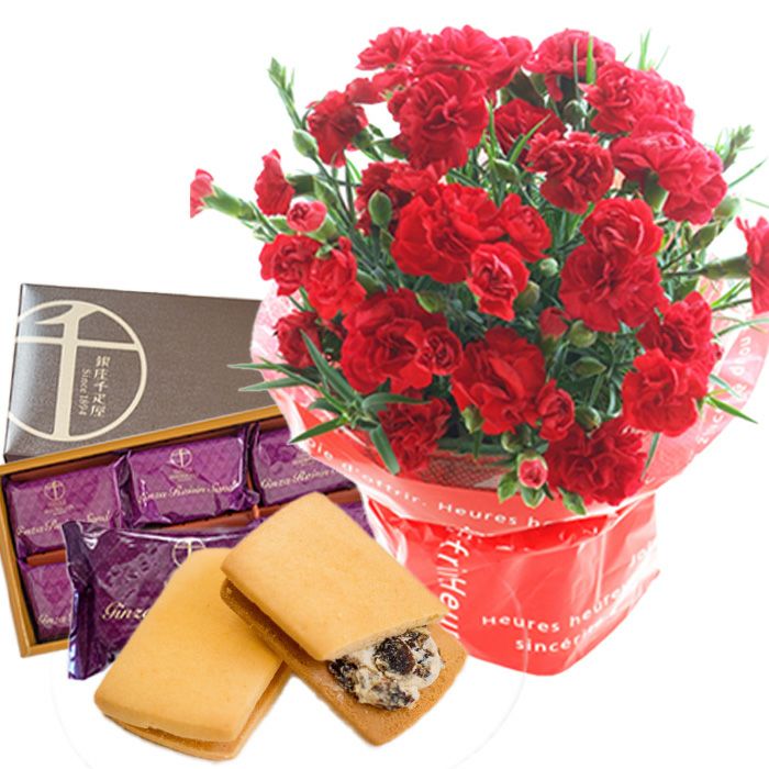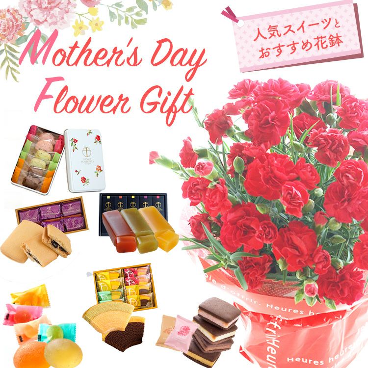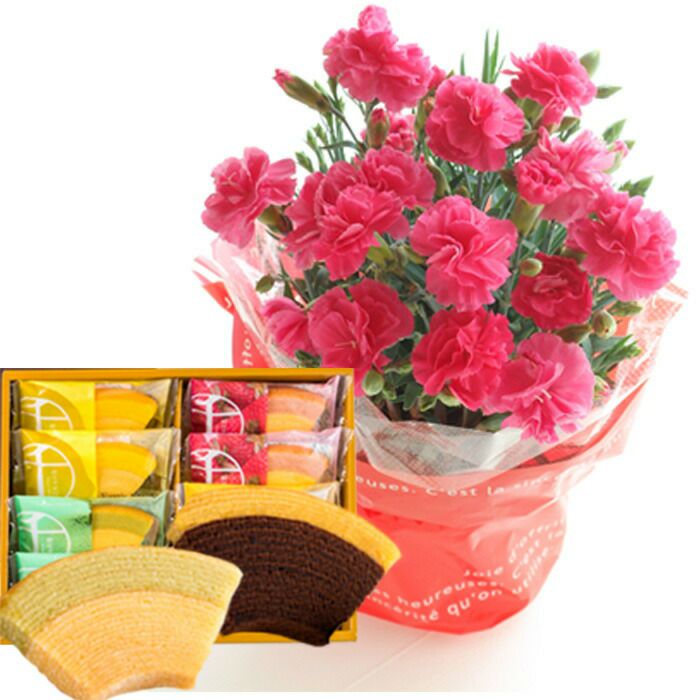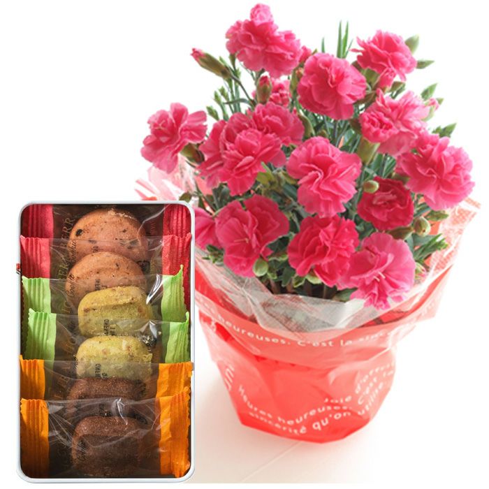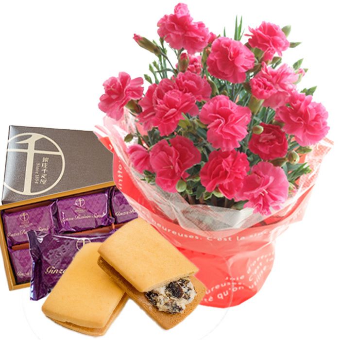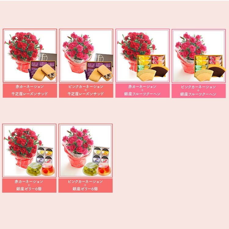 \完売御礼/ 母の日 プレゼント 【花とスイーツ】色で選べるカーネーション花鉢と銀座千疋屋 銀座ゼリー3個 スイーツセット 2025 FKHH