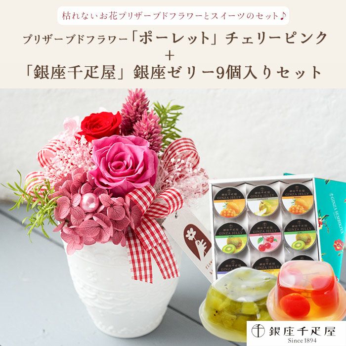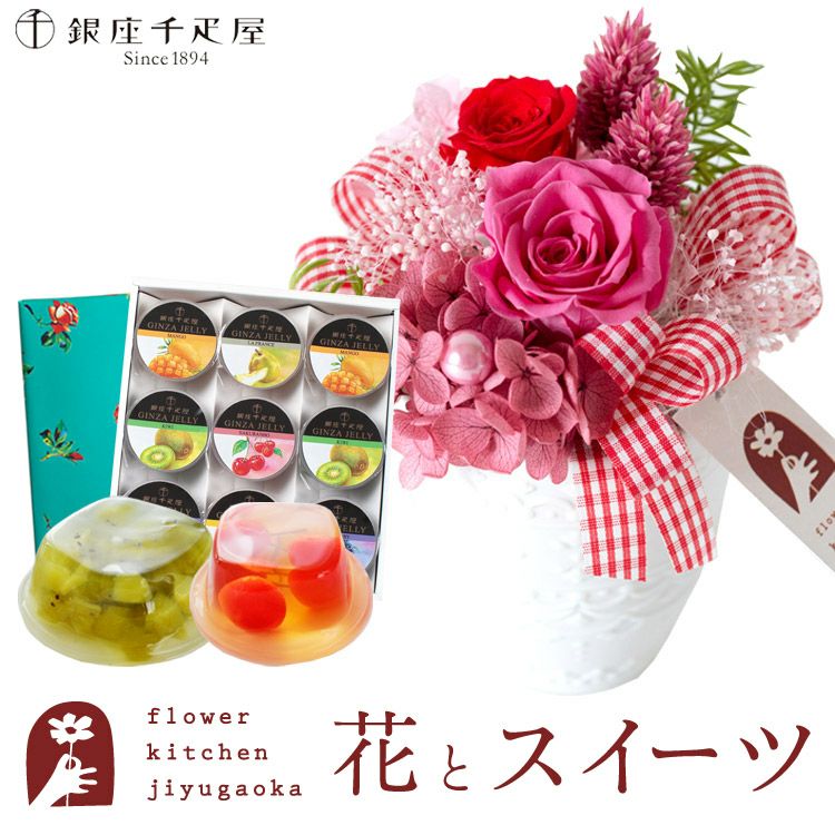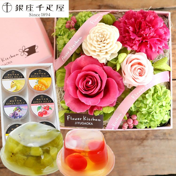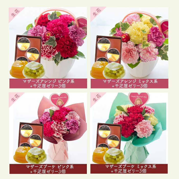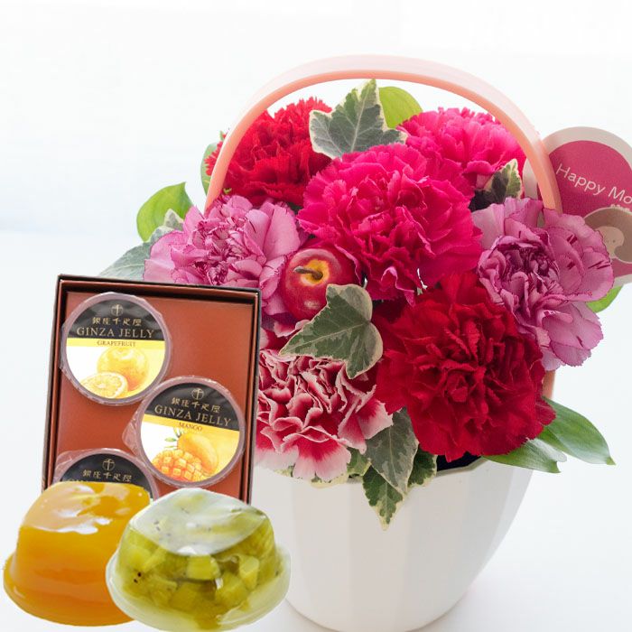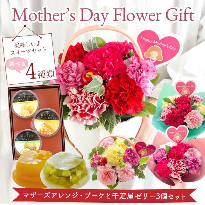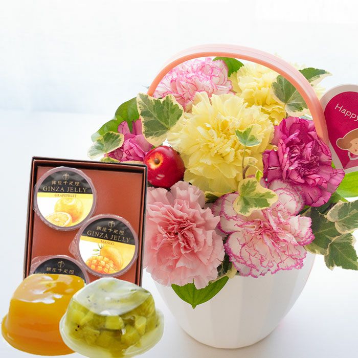 \完売御礼/ 母の日 生花 【花とスイーツ】Mothers アレンジ or ブーケ と 銀座千疋屋 フルーツゼリー3個セット 2025 FKHH